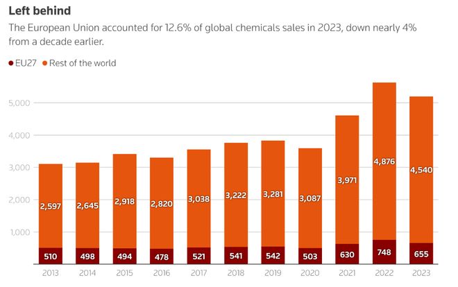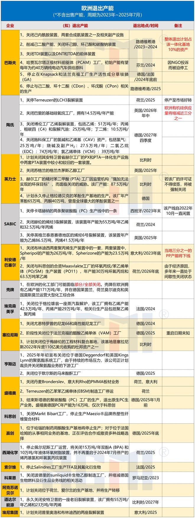 据不完全统计,从2023年至今,包括巴斯夫、陶氏、赢创、亨斯迈、塞拉尼斯、英力士、科思创、SABIC、利安德巴赛尔、埃克森美孚、阿克苏诺贝尔、壳牌、道达尔能源在内的巨头都在陆续“撤离”欧洲: